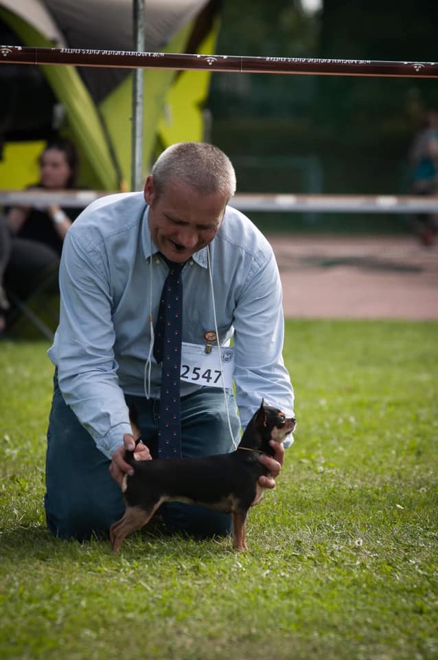 DEATH ON TINY WHEELS z Królewskiego Dworu klasa pośrednia - doskonała, I miejsce CWC & CACIB + Zwycięzca Płci Przeciwnej (BOS)